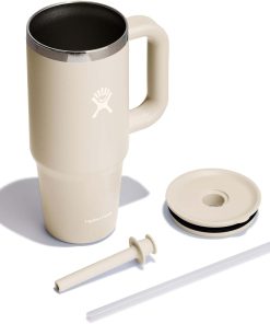 Hydro Flask Travel Tumbler with Handle, Lid and Straw – Insulated Stainless Steel in 24 Oz Oat