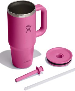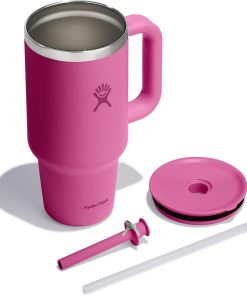 Hydro Flask Travel Tumbler with Handle, Lid and Straw – Insulated Stainless Steel in 32 Oz Reef Pink