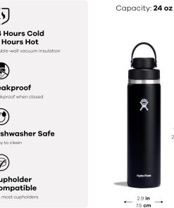 Hydro Flask Water Bottle – Insulated Stainless Steel – Non Spill, Leakproof in 24 Oz Tonal Black