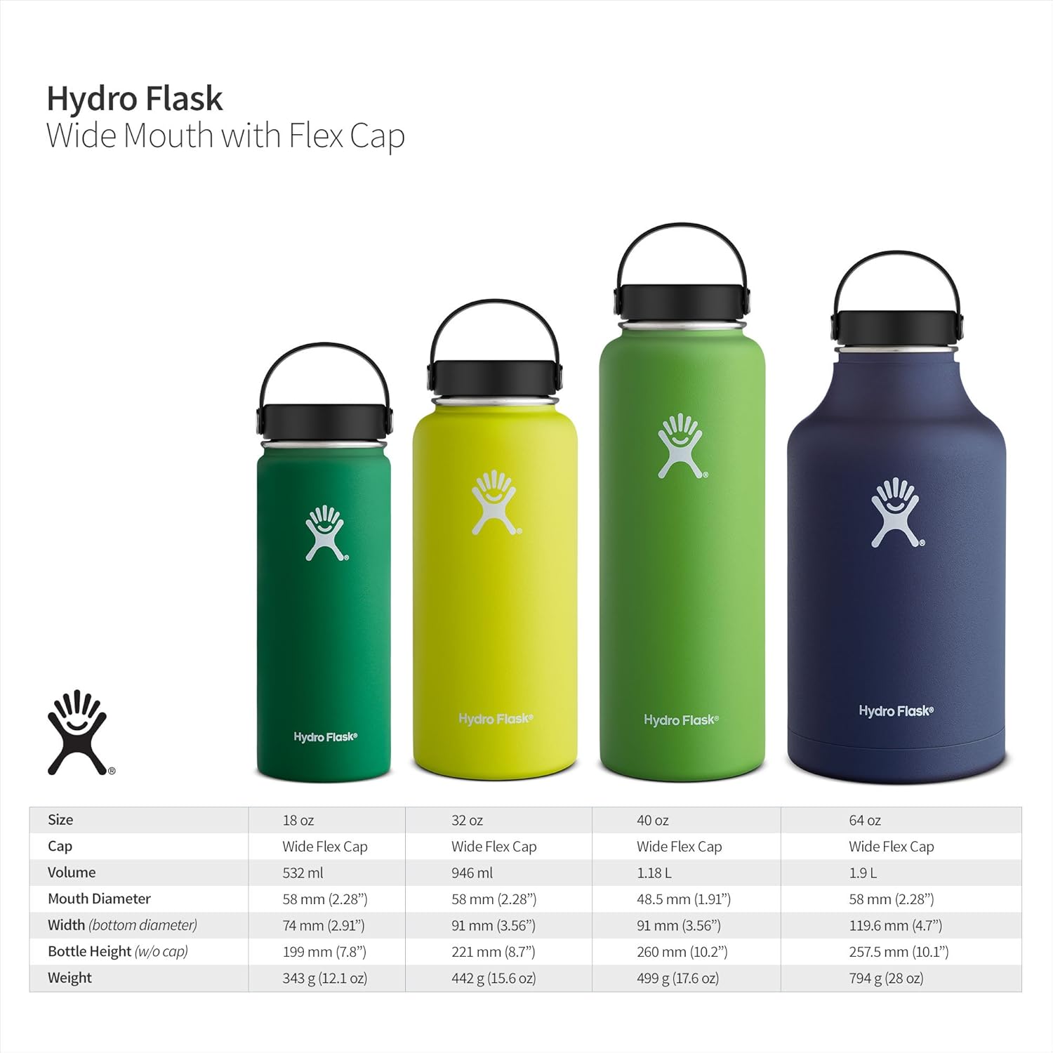 Hydro Flask 32 oz Vacuum Insulated Stainless Steel Water Bottle, Wide Mouth w/Flex Cap, Tangelo