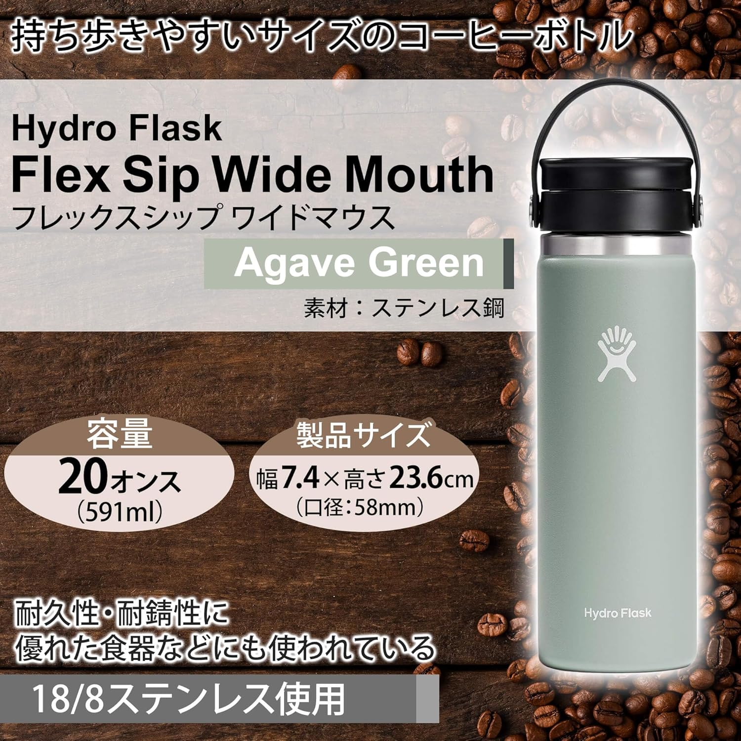 Brand: Hydro Flask , Capacity: 591 Milliliters , Color: Agave , Product Dimensions: 2.28″W x 9.29″H , Model Name: COFFEE 20oz FLEX SIP WIDE MOUTH , Material: Stainless Steel , Number of Items: 1 , Included Components: No , Product Care Instructions: Hand Wash Only , Cap Type: Flex Cap , With Lid: Yes , Manufacturer: HYDRO FLASK , Item Weight: 15.1 ounces , ASIN: B0CHMJPPSV , Item model number: 5000000062102 , Customer Reviews: 4.74.7 out of 5 stars(3)4.7 out of 5 stars , Best Sellers Rank: #2,078,584 in Sports & Outdoors (See Top 100 in Sports & Outdoors)#2,293 in Camping & Hiking Hydration Canteens , Batteries required: No , Brand: Hydro Flask , Capacity: 591 Milliliters , Color: Agave , Product Dimensions: 2.28″W x 9.29″H , Model Name: COFFEE 20oz FLEX SIP WIDE MOUTH