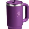 Hydro Flask Travel Tumbler with Handle, Lid and Straw – Insulated Stainless Steel in 24 Oz Beachplum Purple