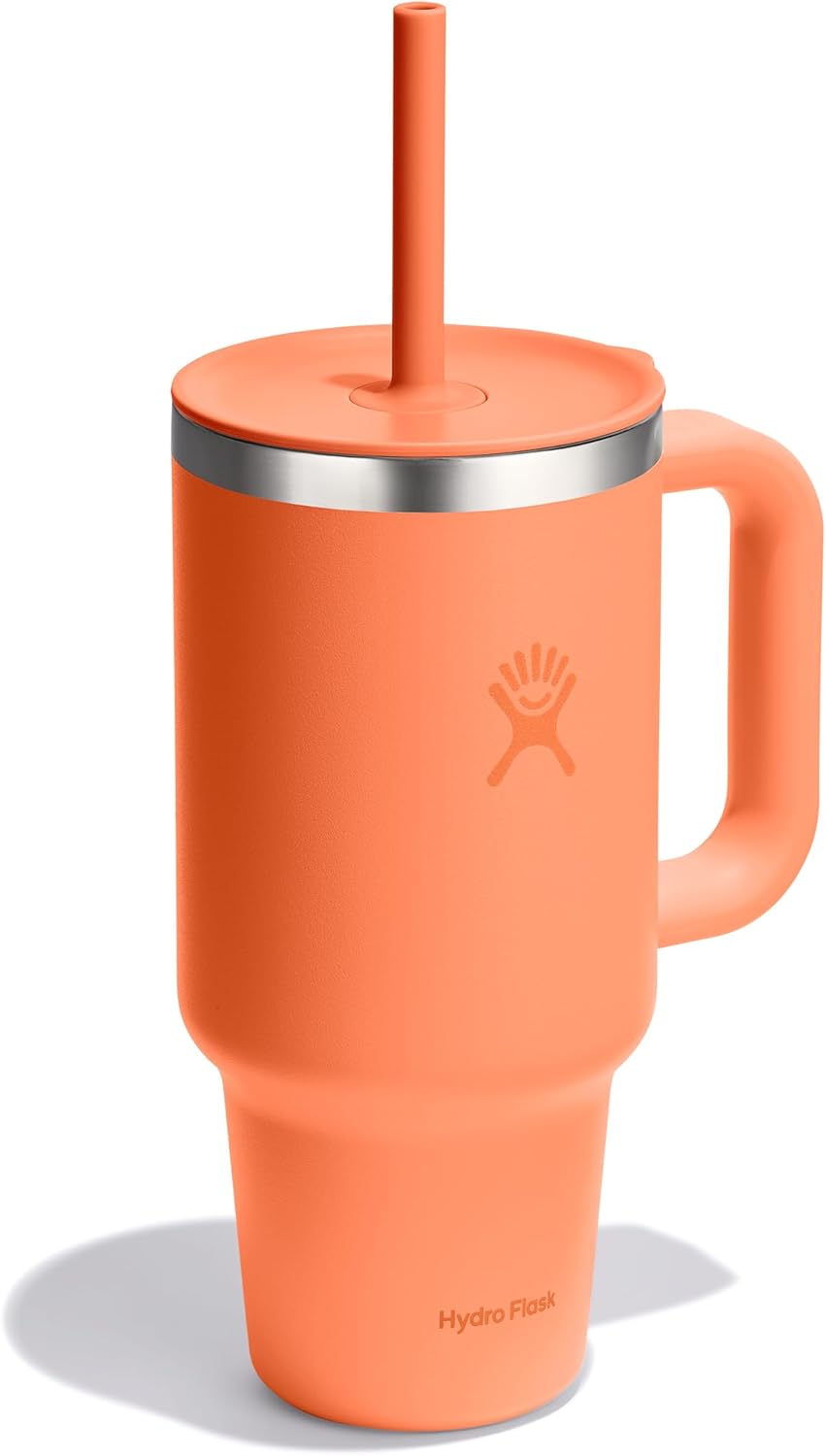 32 OZ NECTAR ORANGE TUMBLER The insulated Hydro Flask 32 oz Travel Tumbler cup with easy flow straw is here to hydrate more and refill less. The insulation keeps drinks cold and the durable handle takes it to the next level. This stainless steel tumbler can go anywhere, fitting most cupholders.