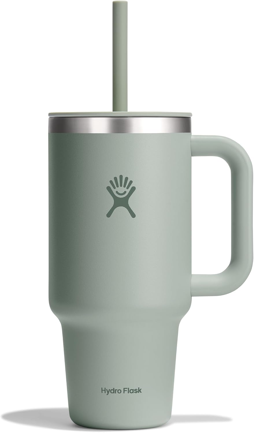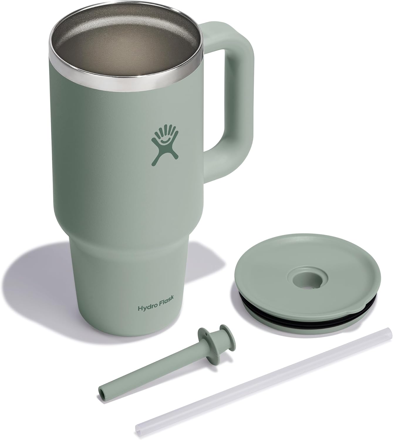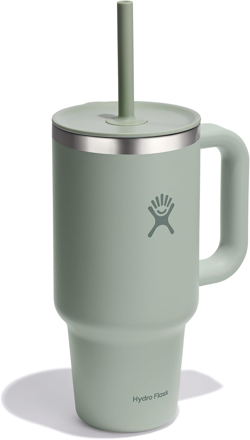 Hydro Flask Travel Tumbler with Handle, Lid and Straw – Insulated Stainless Steel in 32 Oz Tonal Agave Green