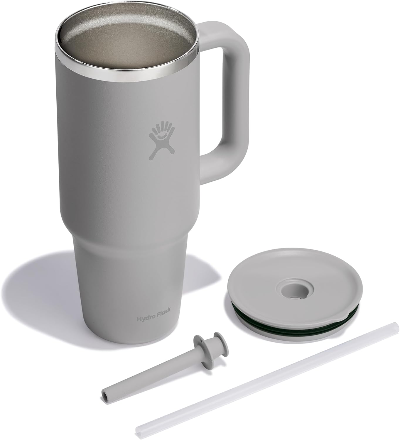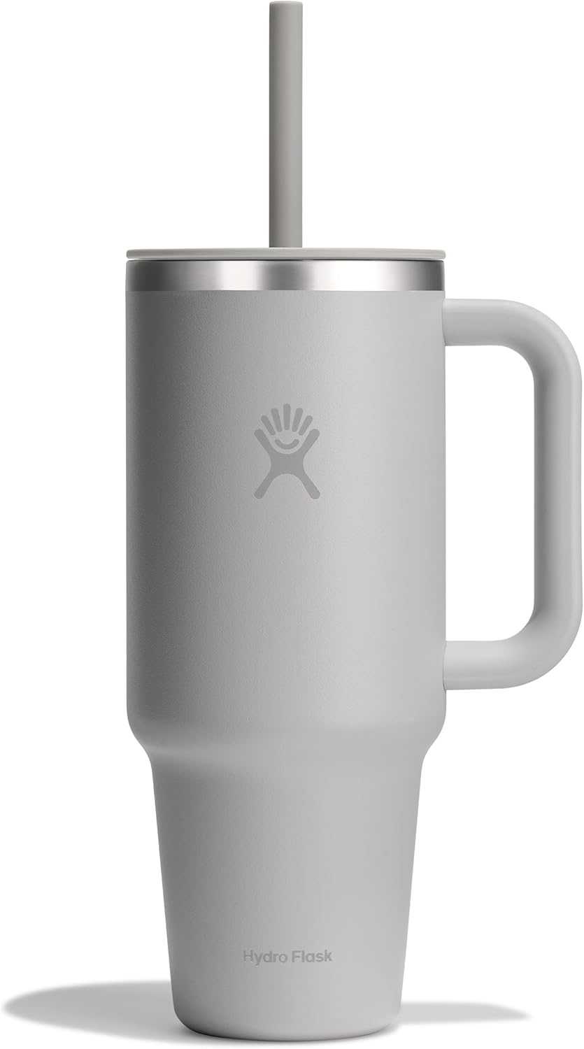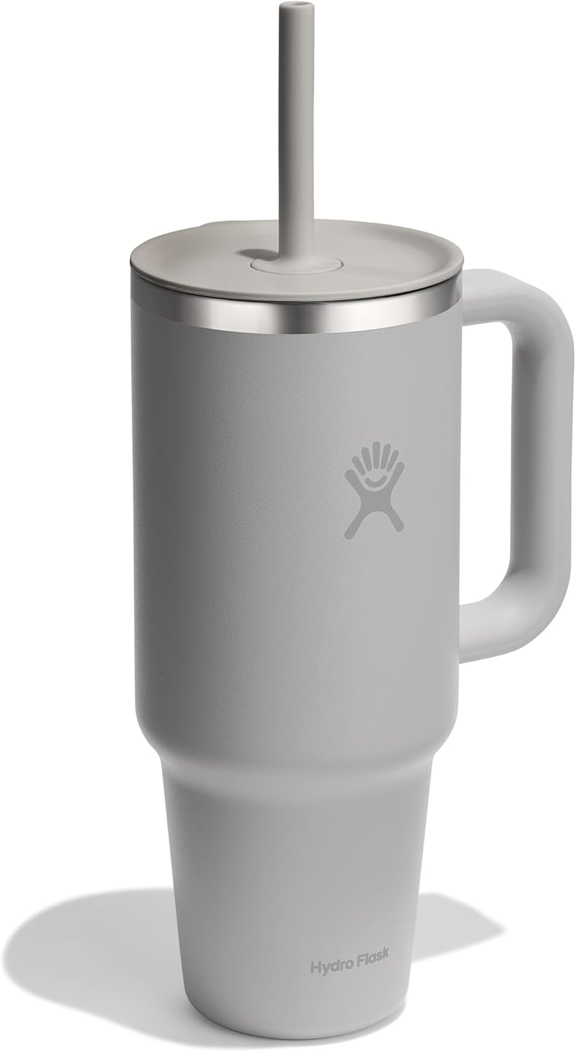 Hydro Flask Travel Tumbler with Handle, Lid and Straw – Insulated Stainless Steel in 40 Oz Tonal Birch Gray