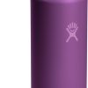 24 OZ BEACHPLUM PURPLE BOTTLE Refresh on the go with this Hydro Flask insulated, stainless steel 20 oz Wide Mouth bottle and leakproof Chug Cap. The narrow chug spout provides a convenient, controlled flow to quickly quench your thirst. The wide mouth cap easily fits ice cubes to keep things cool.