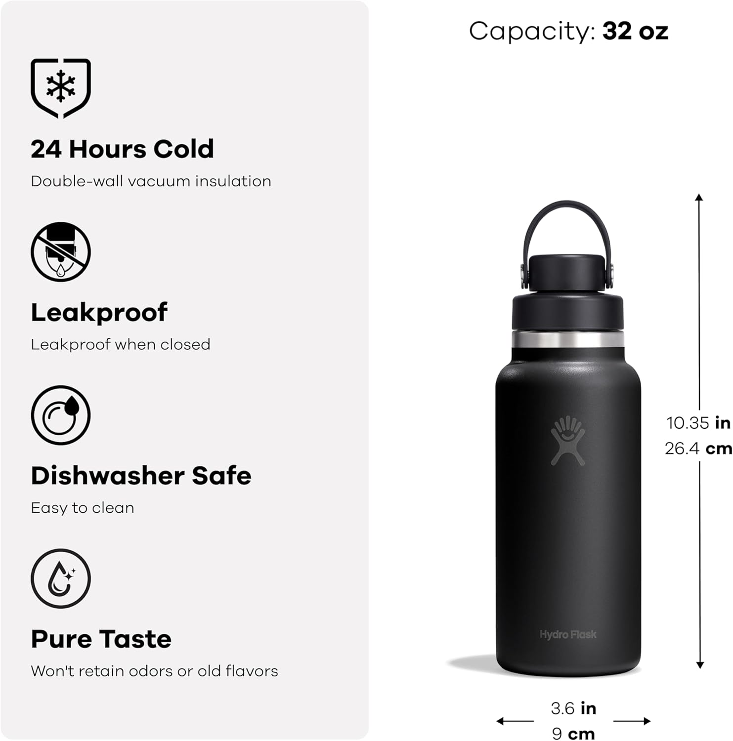 24 HOURS COLD The insulated bottle keeps drinks cold for 24 hours thanks to double-wall vacuum insulation. Hydro Flask water bottles feature TempShield insulation, keeping contents chilled all day. Flex Chug Cap not intended for use with hot drinks.